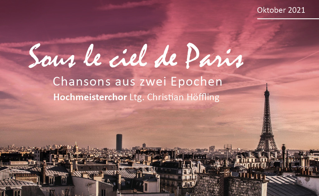 SOUS LE CIEL DE PARIS – Chansons aus zwei Epochen HochmeisterChor, Leitung: Christian HöfflingHochmeistersaal, Paulsborner Str. 86, 10709 BerlinErster Termin: Samstag,…